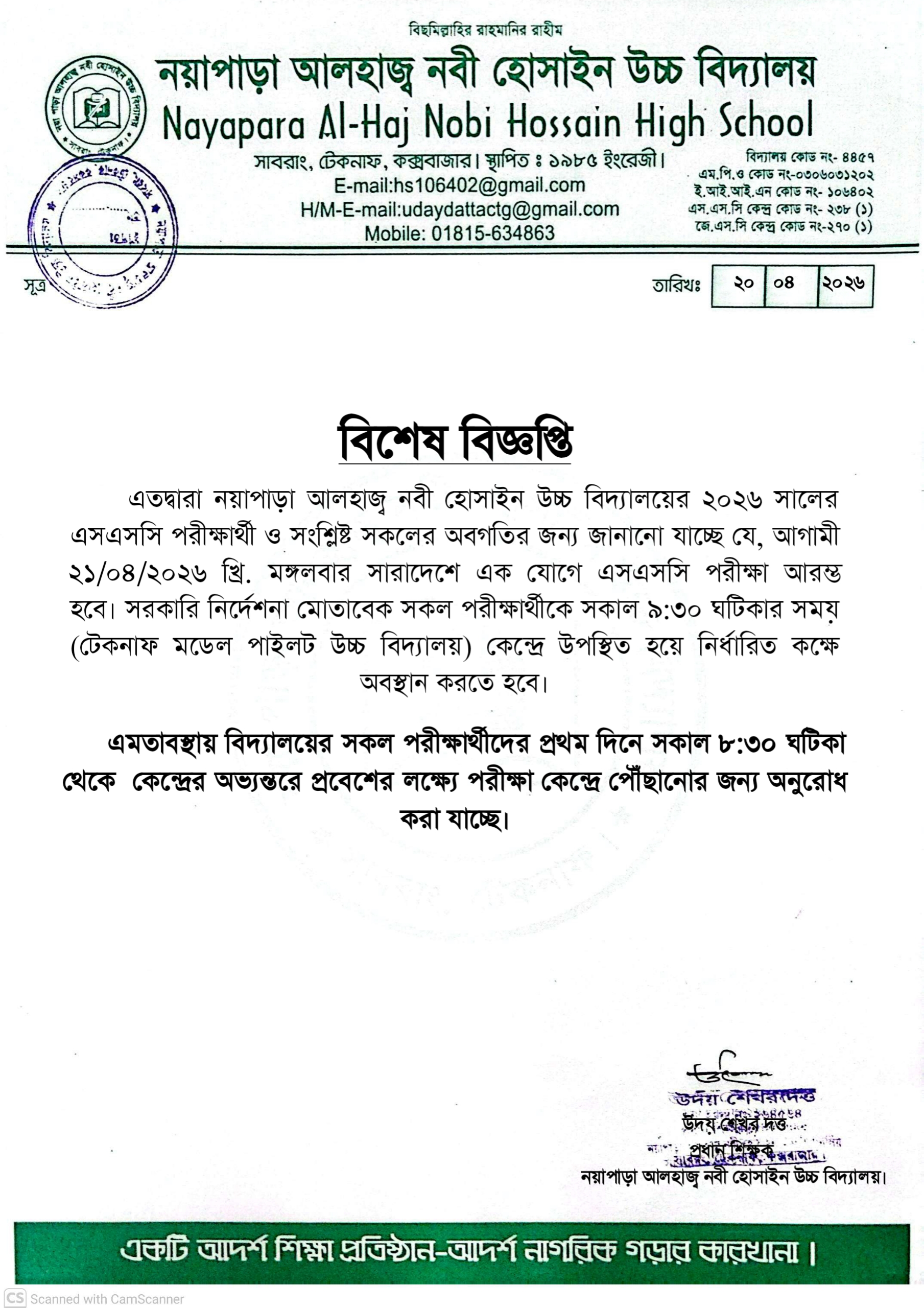 ২০২৬ সালের এসএসসি পরীক্ষার্থী ও সংশ্লিষ্ট সকলের অবগতির জন্য জানানো যাচ্ছে যে,